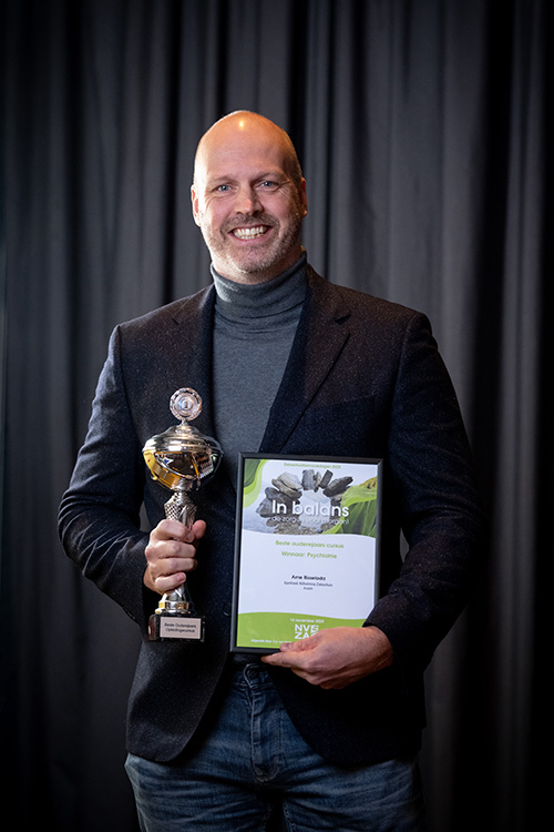 De prijs voor de beste ouderejaars cursus ging dit jaar wederom naar de cursus Psychatrie, die vorig jaar ook de prijs in de wacht heeft gesleept! Deze cursus is georganiseerd en begeleid door Arne Risselada (Apotheek Wilhelmina Ziekenhuis) en heeft gewonnen met een geweldige score van 8,89 uit 10! Deelnemers waardeerden Arne als goede spreker met een gezonde dosis humor. Daarnaast was er een hoge informatiedichtheid waardoor er veel geleerd is die dag.